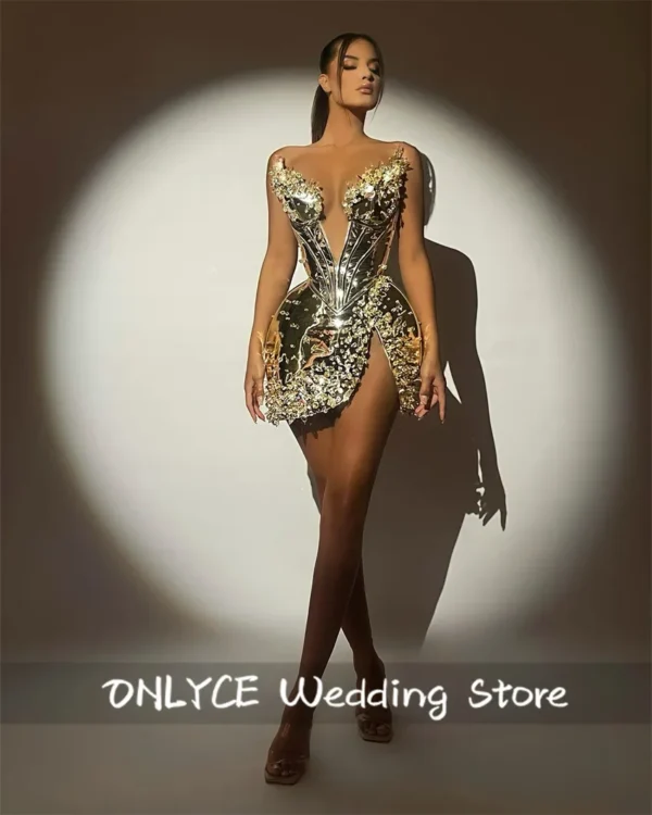 - Elegance Meets Fun: The short length adds a youthful, fun touch, while the sparkling embellishments keep the dress elegant and chic. The contrast between playful and refined makes it the ideal choice for anyone looking for a dress that combines both style and energy.